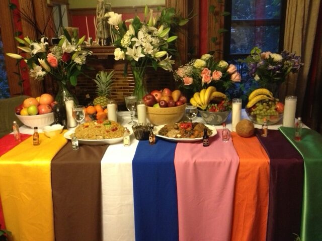 The Ancestral Altar is a community gathering place here at Kwanzaa Heights. Reverence for the ancestors is universal across the African continent and in places the world over where people of African descent reside. And by “ancestors” we mean forebears in our family line as well as those who are common to the Black Family, such as Harriet Tubman or Patrice Lumumba and those outside of a category.